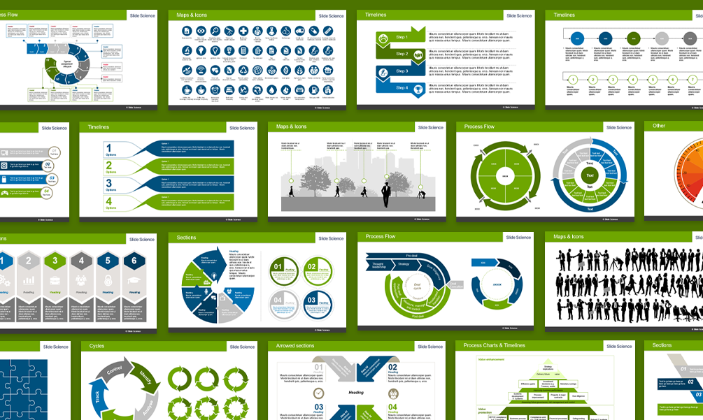 The Slide Science Templates, Graphics and Icons Pack contains 500+ slide elements for you to make professional slide decks in PowerPoint.